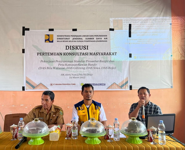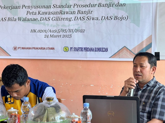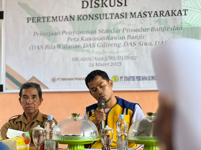 Foto : DISKUSI PERTEMUAN KONSULTASI MASYARAKAT Pekeriaan Penvusunan Standar Prosedur Banjir dan Peta KawasanRawan Banjir (DAS Bila Walanae, DAS Gilireng, DAS Siwa, DAS Bojo)